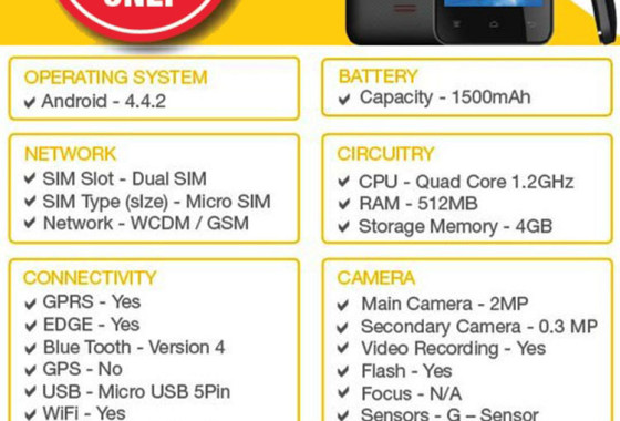 Hisense – life reimagined KitKat (Android 4,4) 4.0″ WVGA, Full Touch Screen Quad Core 1.2Ghz Fast Processor 4GB (ROM) +512MB (RAM) , SD Slot Supports up to 32GB 1500 mAh … Continue reading Hisense U601 – only TShs. 120,000/-
